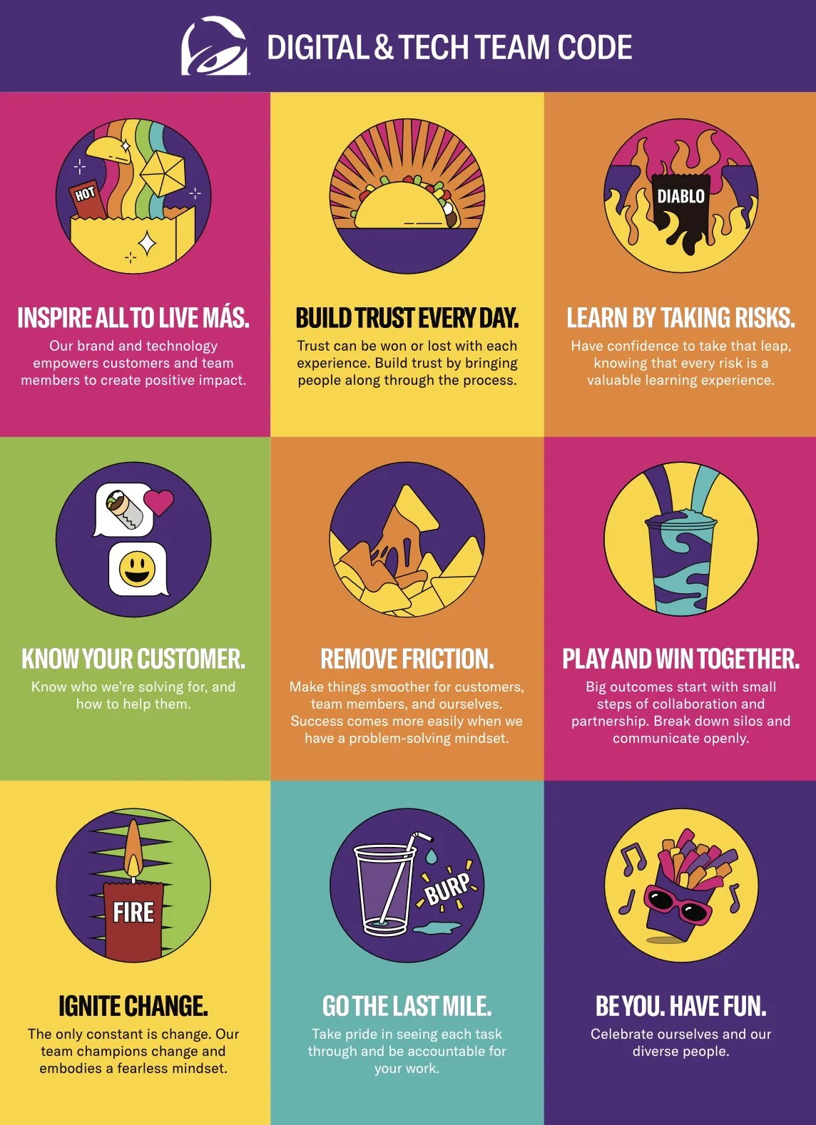 Worked to articulate the key values and beliefs into a Digital and Tech Code with 9 key principles that very intentionally codified key behaviors and attitudes that support the desired culture of the new division